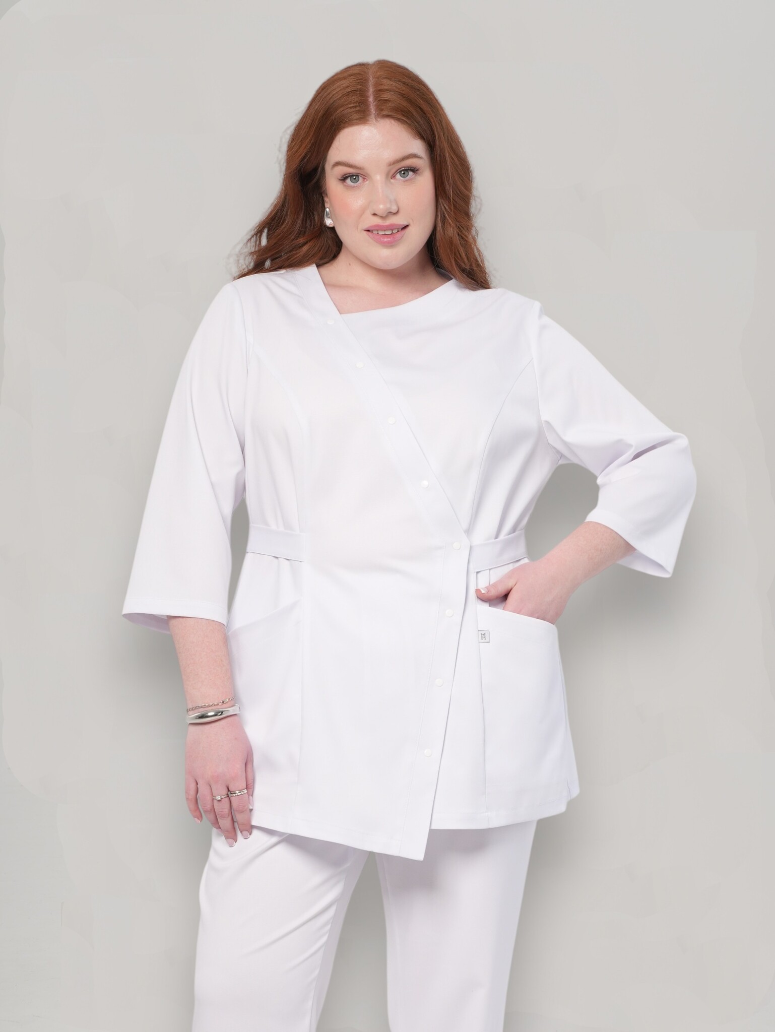 Блуза медицинская Бл-379 к 3/4, либерти люкс, белая.