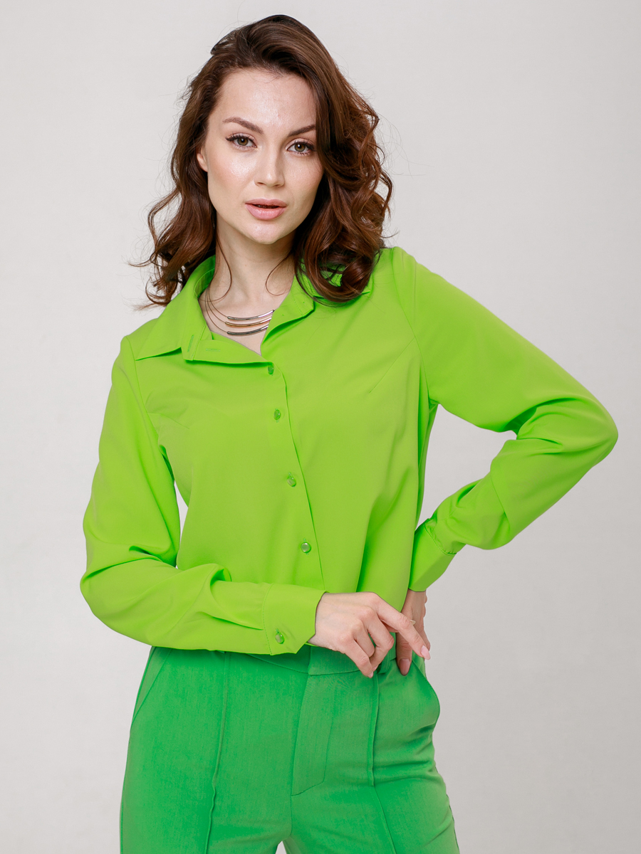 Блуза женская Бл-1024 б шелк искусственный, цвет зеленый.