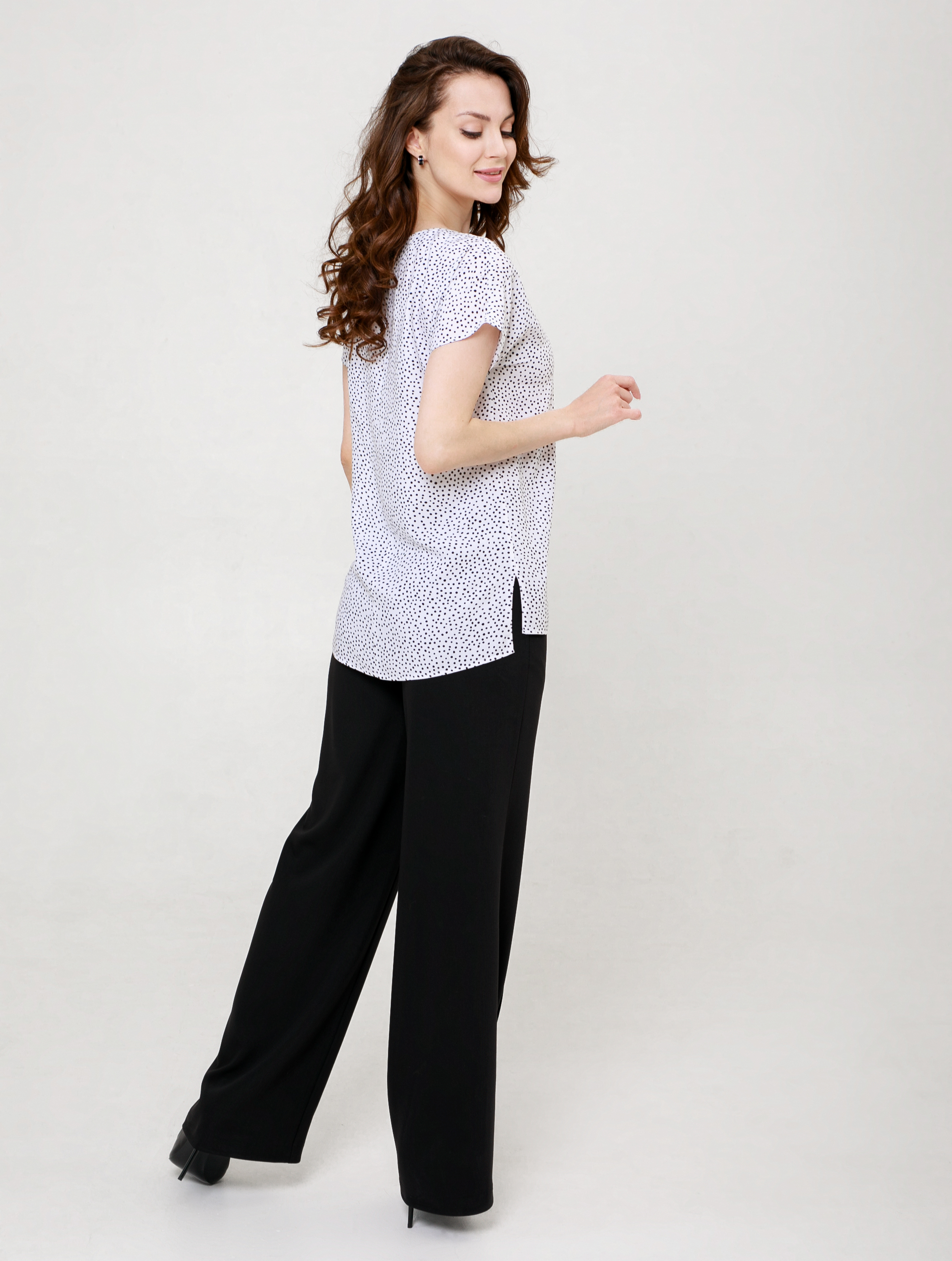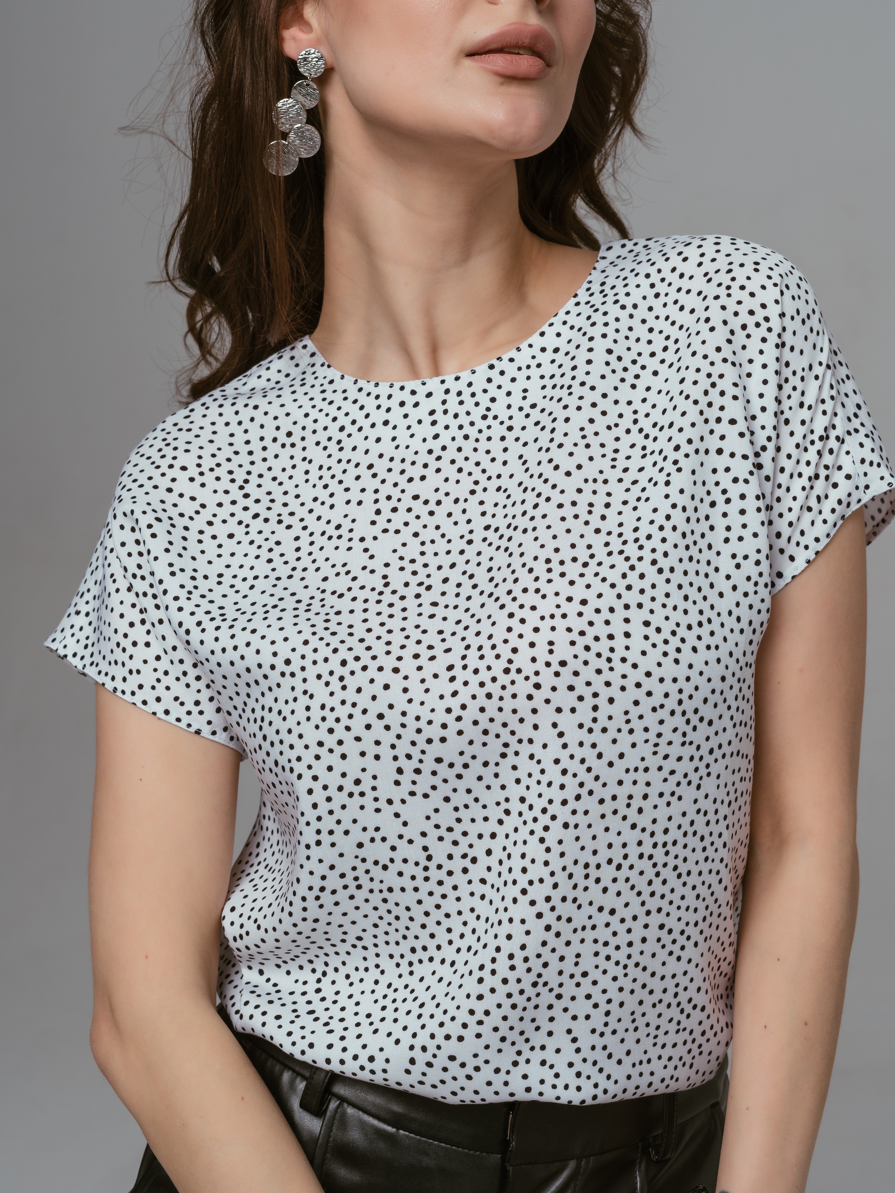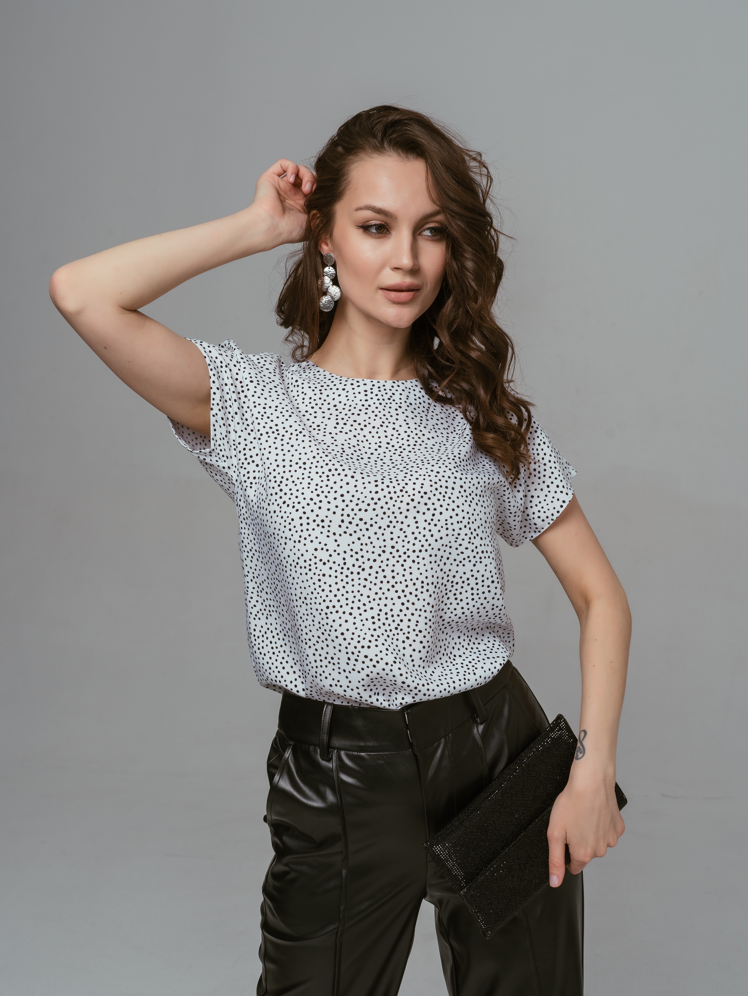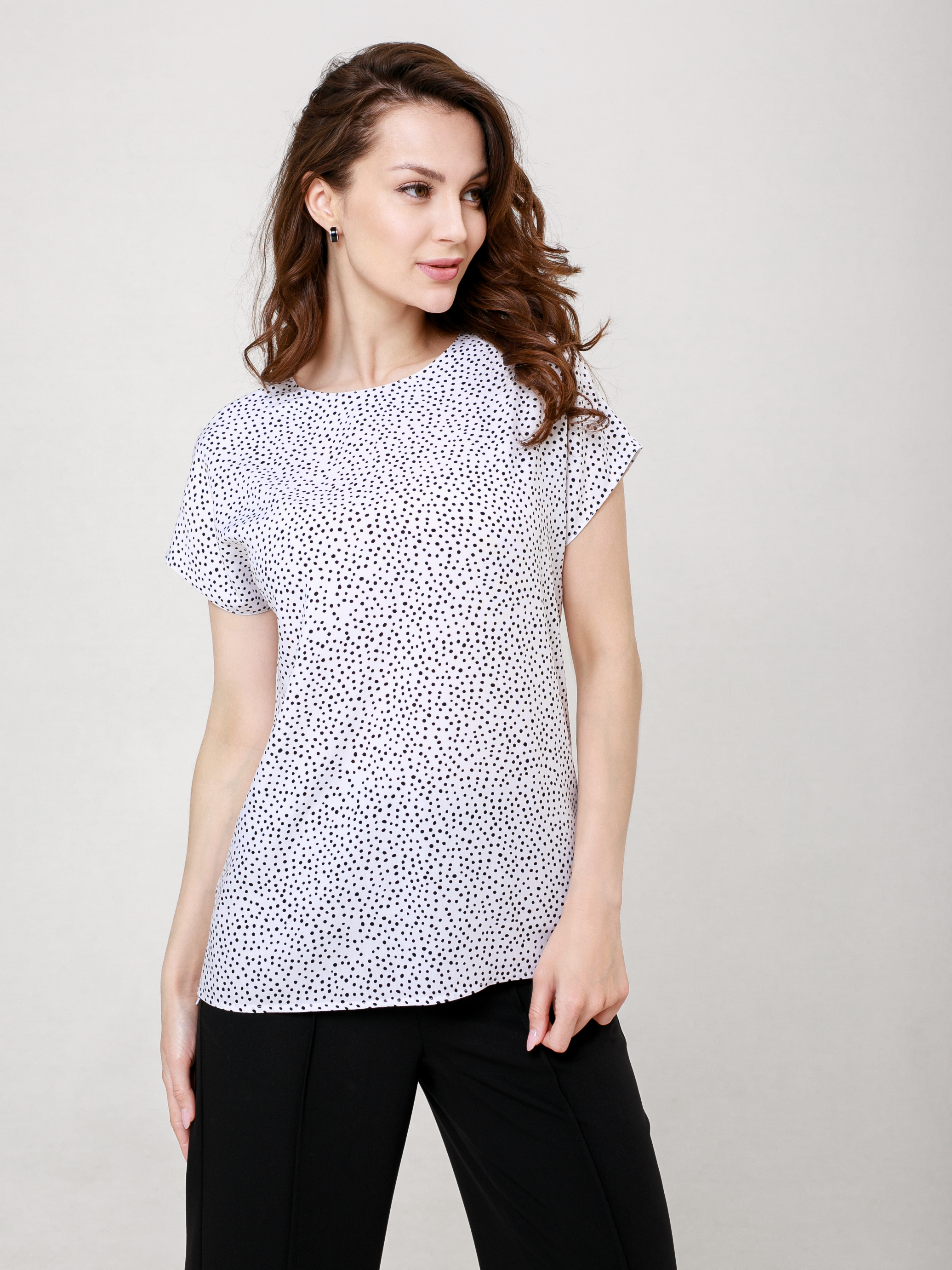 Блуза женская Бл-1025 вискоза, цвет белый/черный горошек.