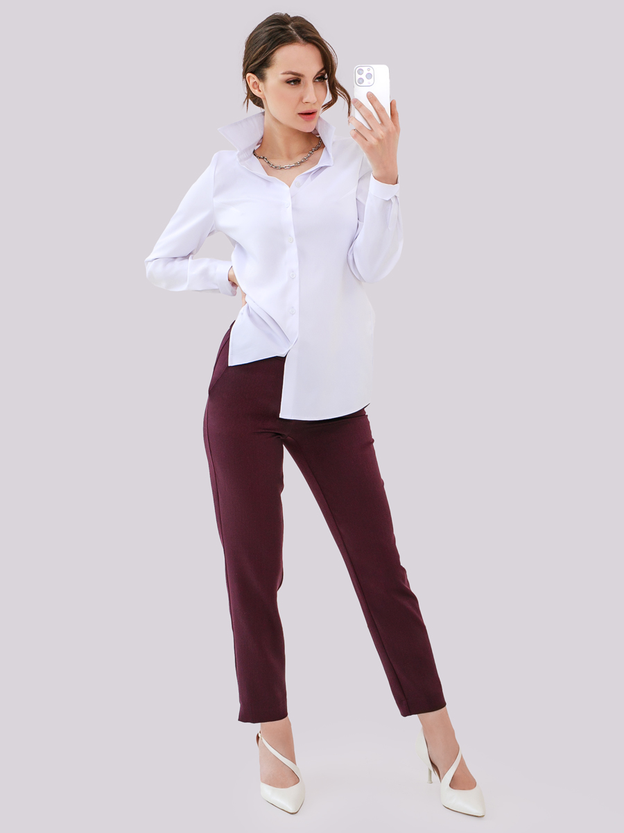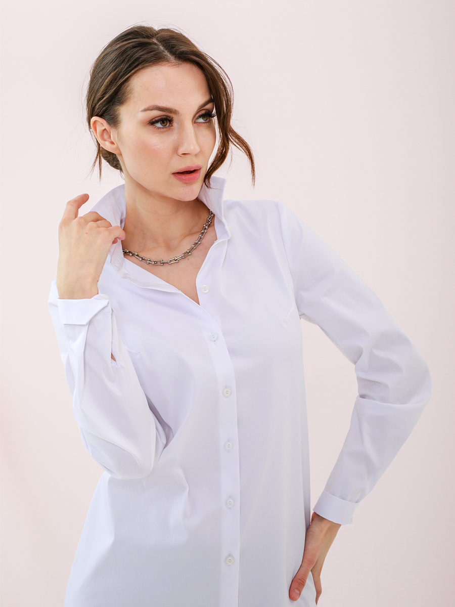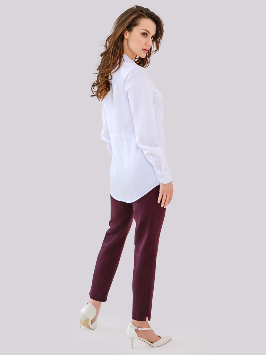Женская блуза прямого силуэта прекрасно подойдет для офиса, в качестве блузки для школы, университета, для создания праздничного и элегантного образа. Блуза изготовлена из очень комфортной и приятной к телу ткани, она красиво и роскошно струится по телу. Рубашку можно носить, как с брюками, так и с юбкой. За счет свободного кроя вы сможете разнообразить свои образы, одев под блузку красивый топ. Образ получится более сложным и интересным. Ткань не просвечивает, легко восстанавливает свою форму.