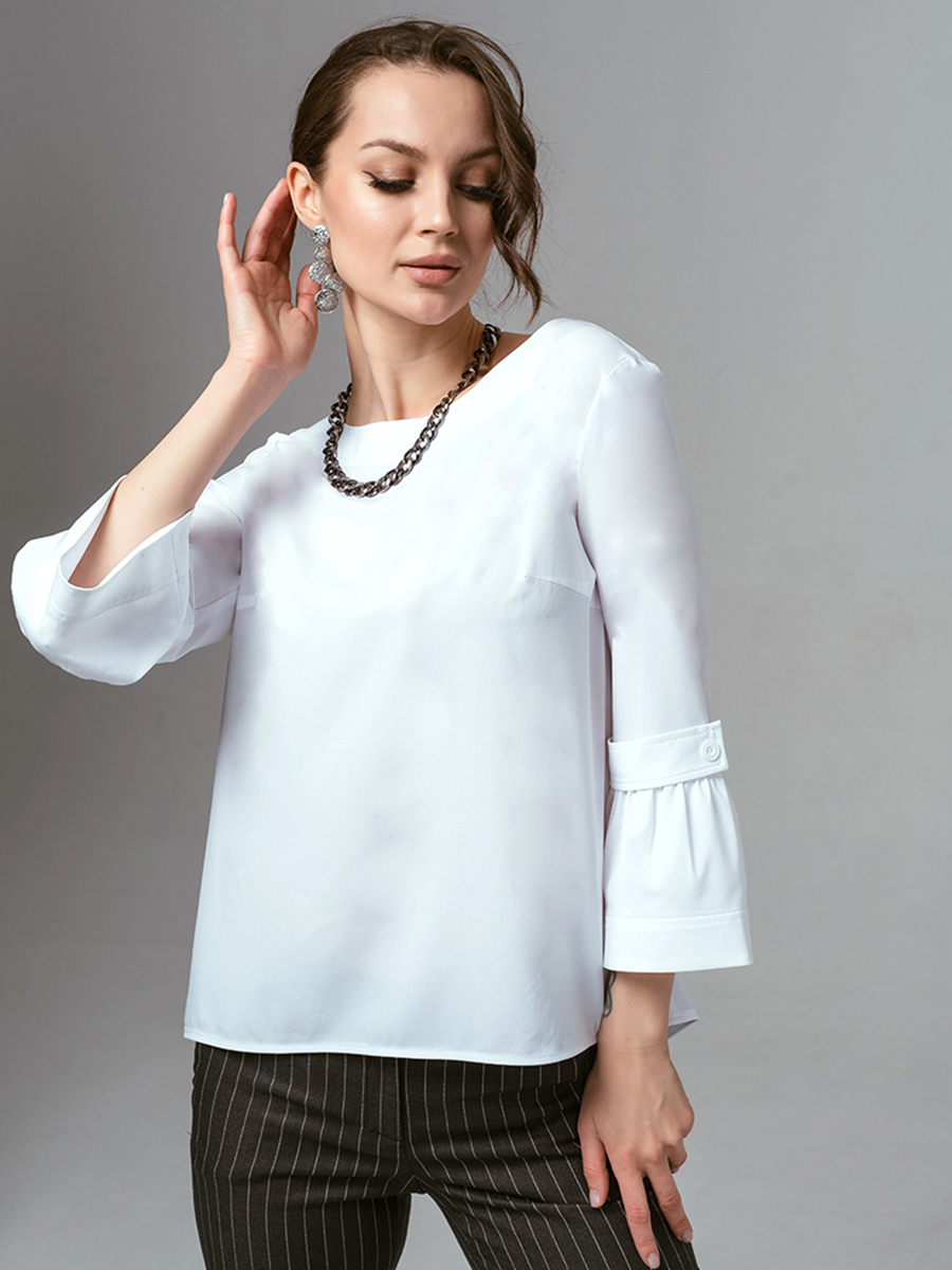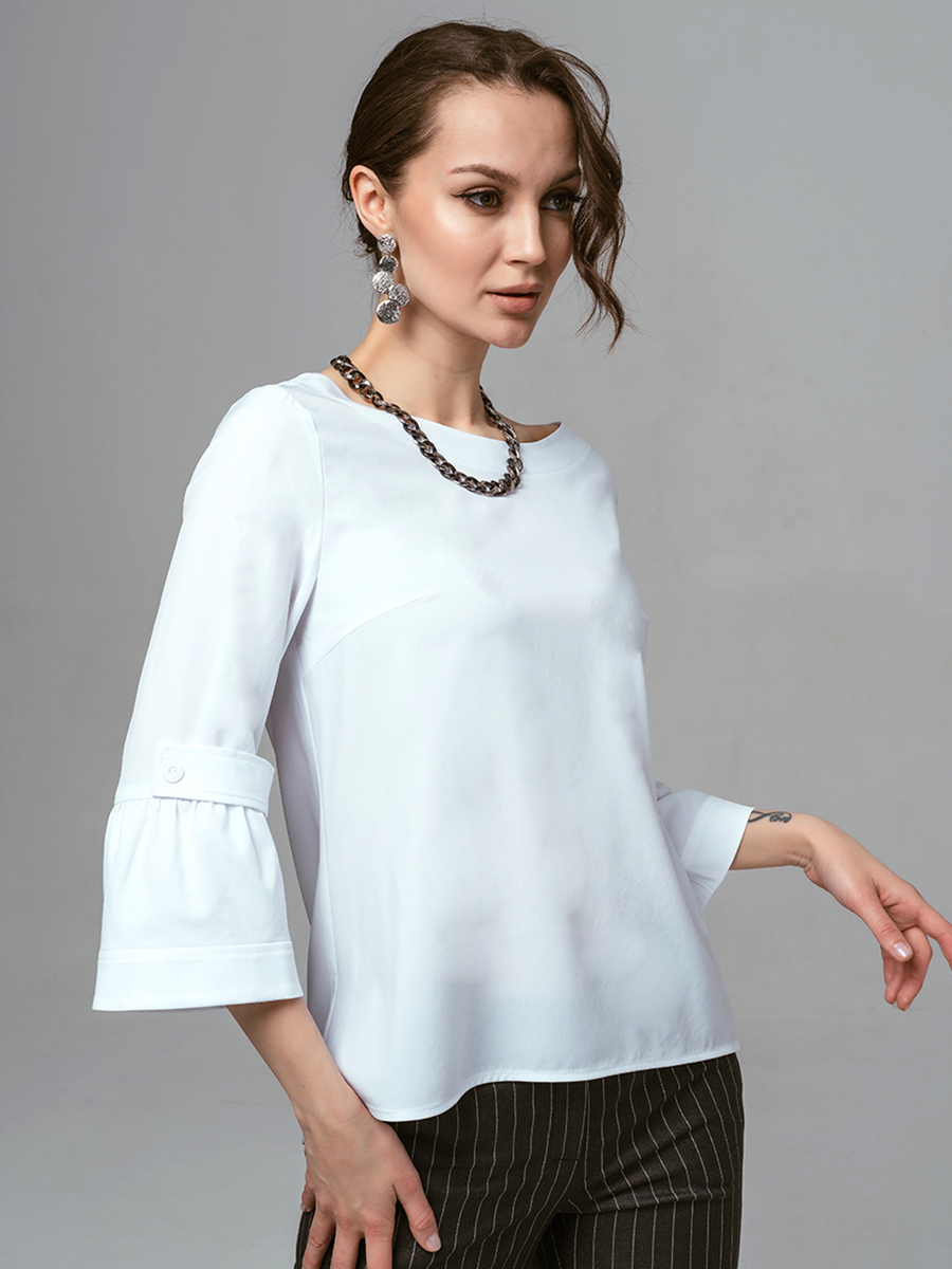 Блуза женская Бл-349 3/4 шелк искусственный, цвет белый.