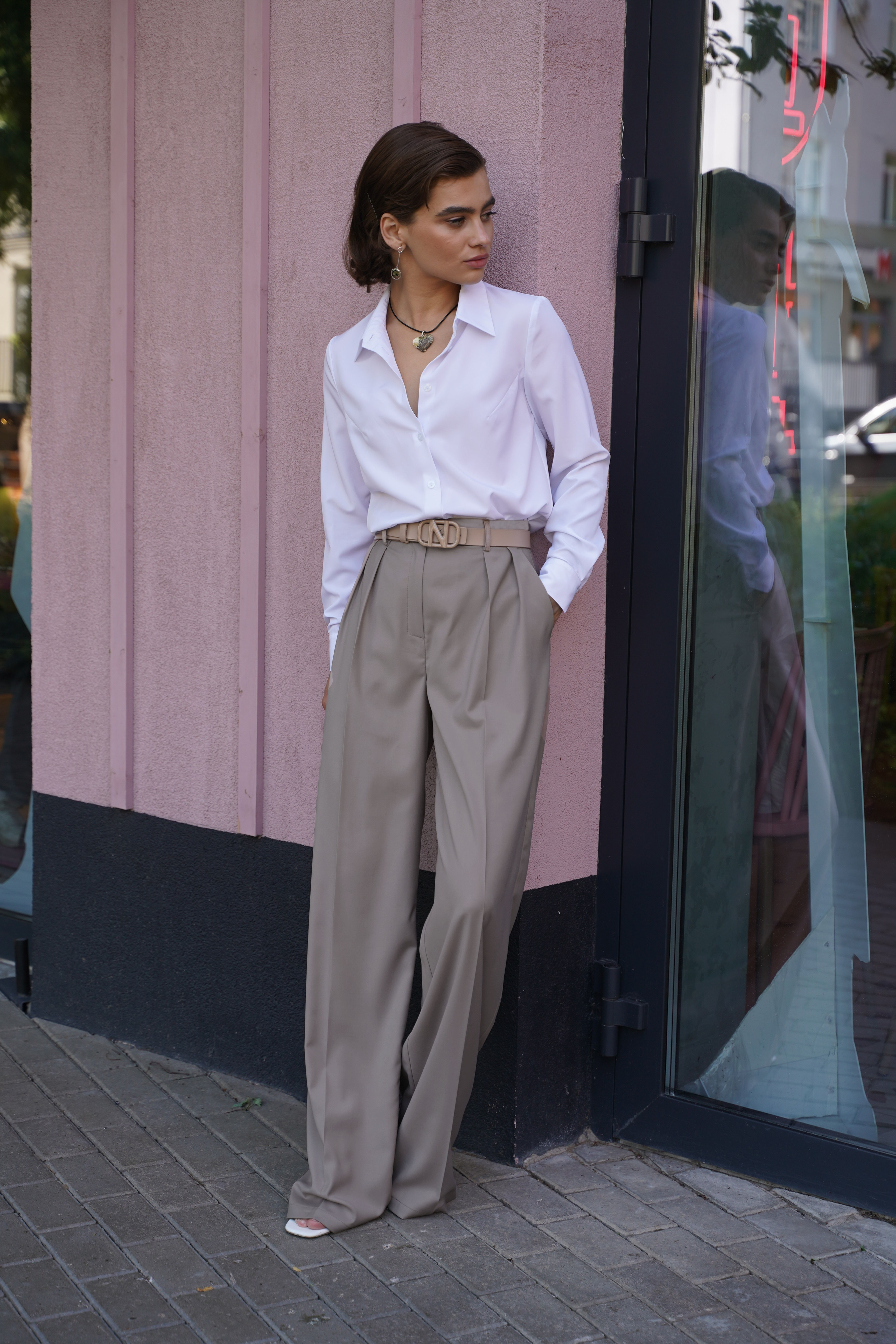 Брюки палаццо женские классические с высокой посадкой синие- это must have. Широкие брюки со складками участвовали во всех показах ведущих модных домов. Женские брюки палаццо выполнены из пластичной, мягкой и комфортной поливискозной ткани. Поливискоза – практичная, удобная ткань. Она сохраняет гигроскопичность и воздухопроницаемость на высоком уровне. Вам будет комфортно в них в офисе или на прогулке. Ткань относится к малосминаемой. Брюки палаццо женские классические с высокой посадкой синие подчеркивают женственность силуэта, скрывая при этом недостатки. Брюки школьные палаццо классические визуально стройнят фигуру за счет подчеркнутой линии талии, создающей силуэт «песочные часы».