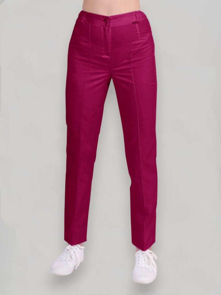Женские медицинские брюки с высокой посадкой. Модель прекрасно садится на талию благодаря двум резинкам по бокам. Застежка на молнию и пуговицу. Лайкра, в составе ткани, добавляет эластичности. Прямой покрой не стеснит ваших движений.