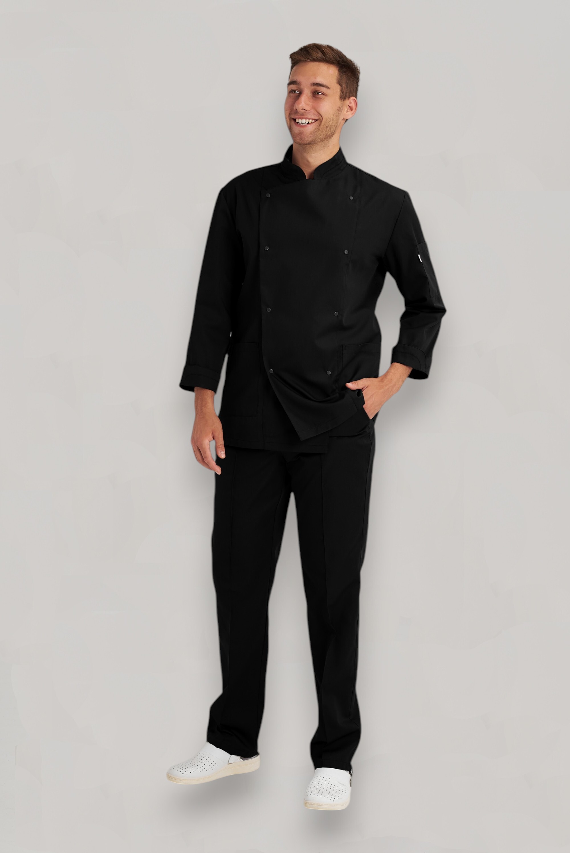 Мужской китель поварской Бл-213к 3/4 клеон проф, цвет черный.