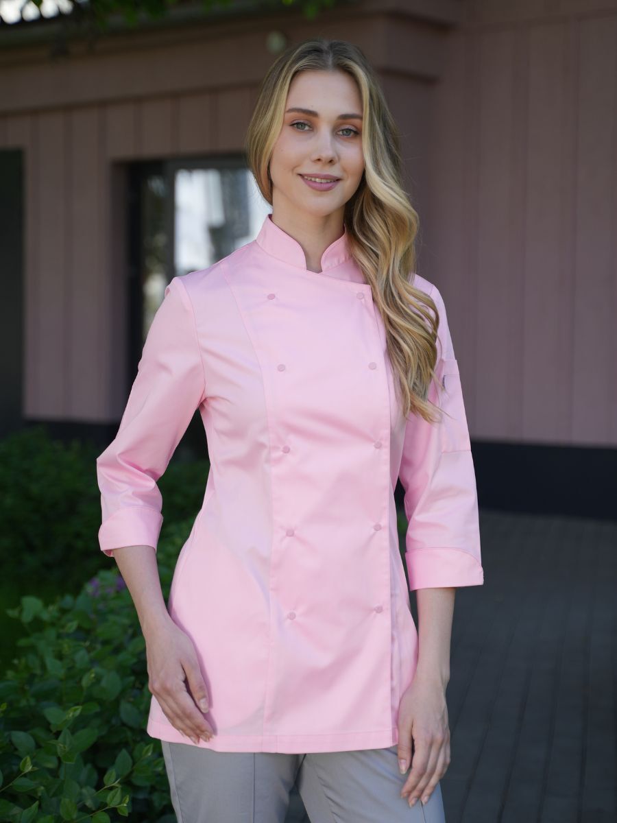 Женский китель поварской Бл-318 к 3/4 клеон проф, цвет розовый.