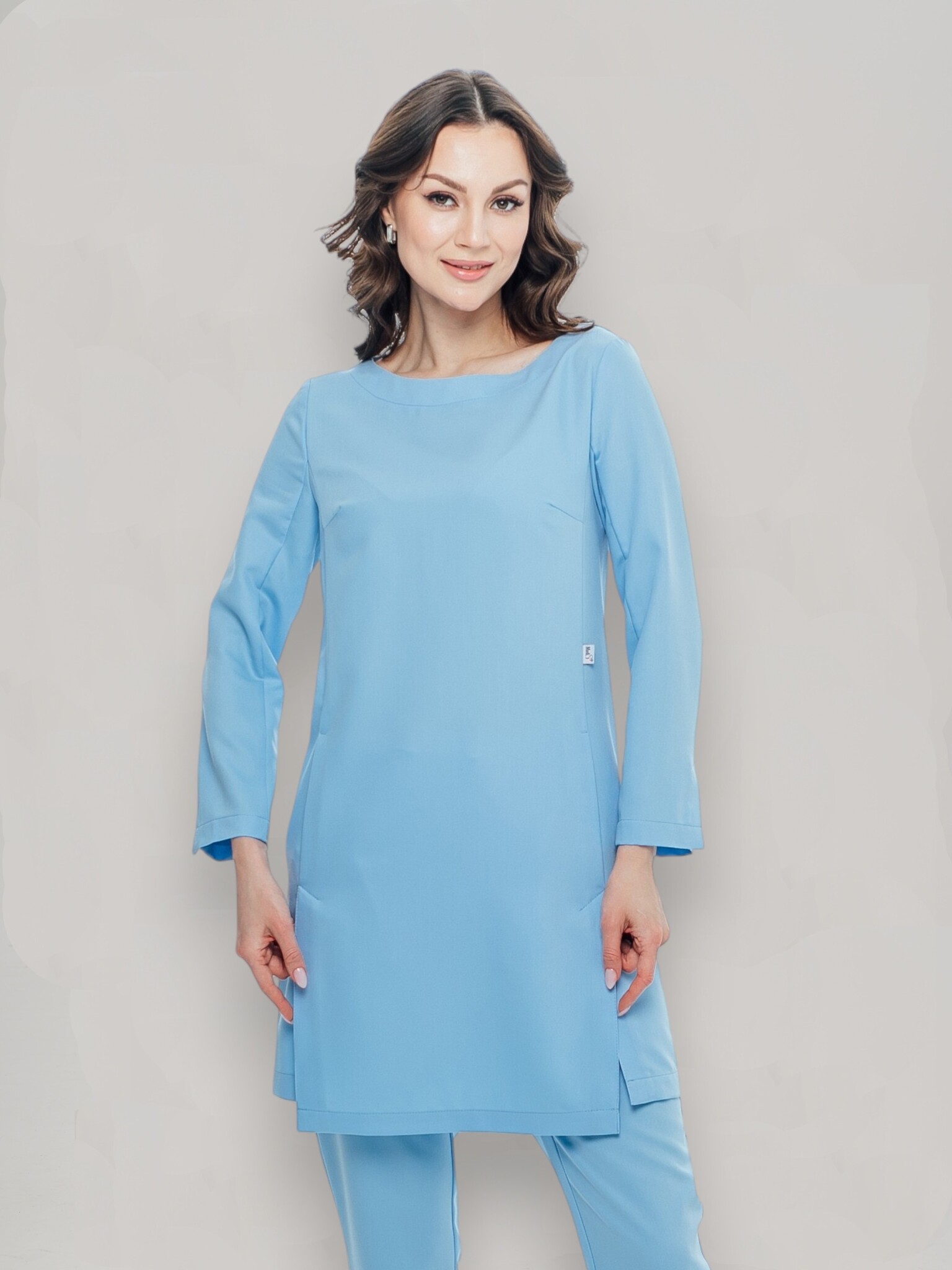 Блуза медицинская Бл-344 3/4, либерти люкс, голубой.
