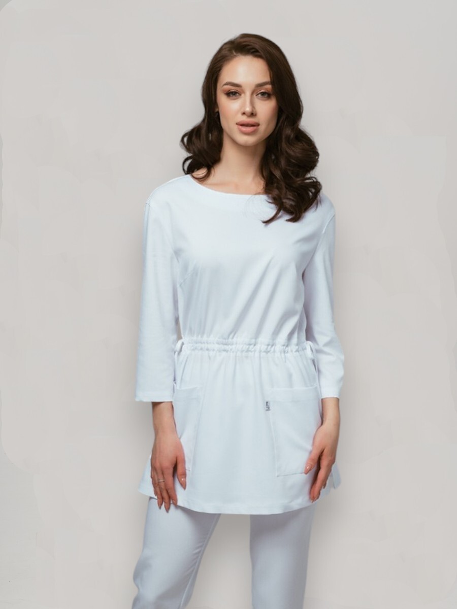 Блуза медицинская Бл-376 3/4, либерти люкс, белая.