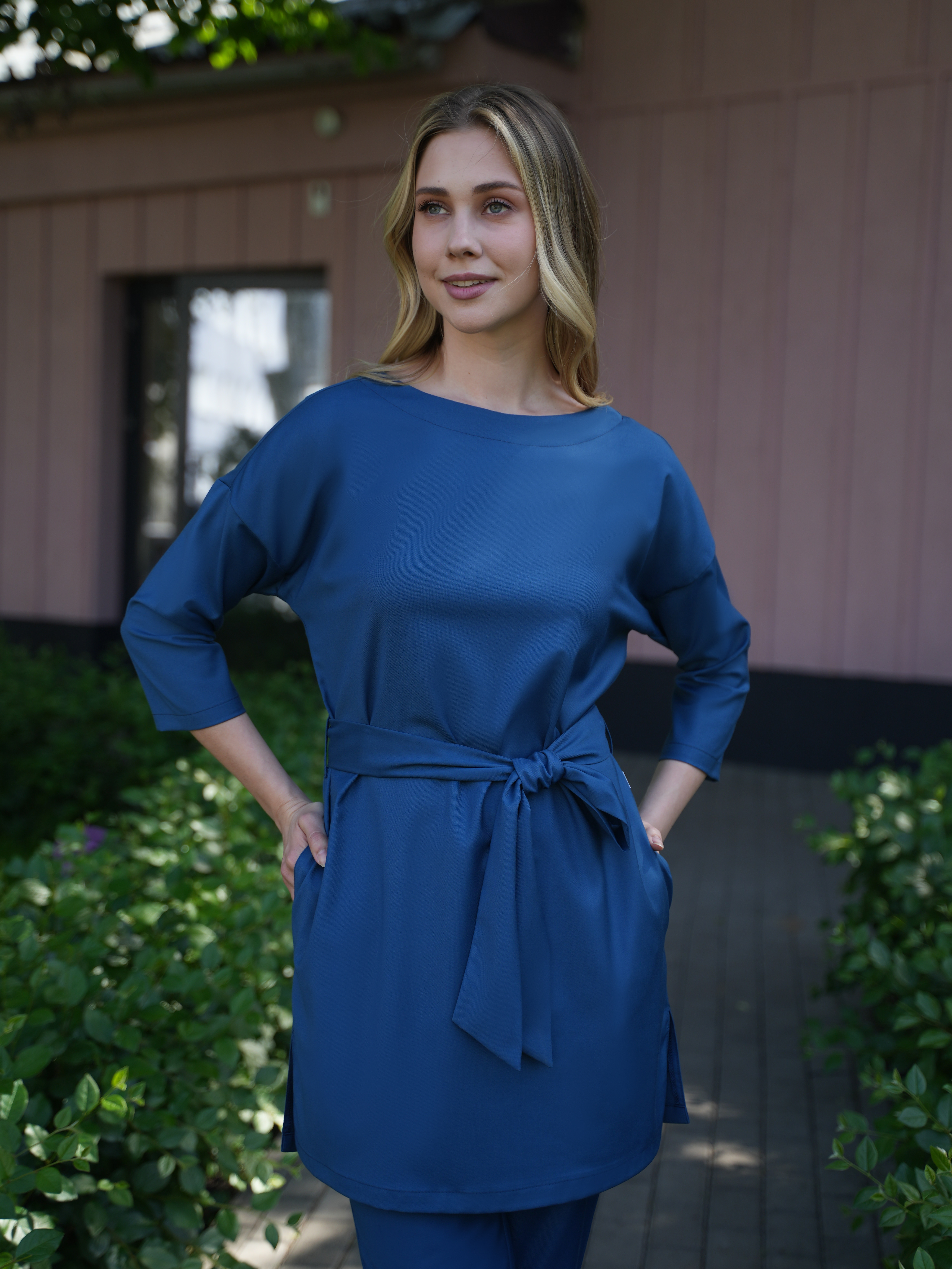 Блуза медицинская Бл-365 3/4, статус премиум, темно-бирюзовый цвет.