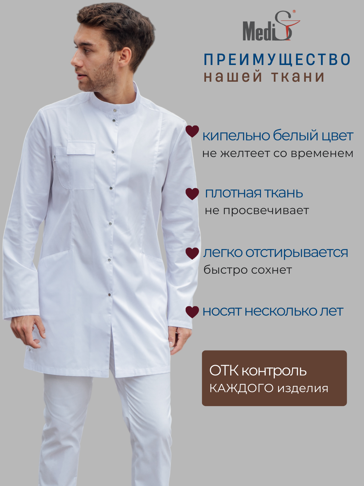 В нашем интернет магазине медицинской одежды представлены: халаты, комплекты, головные уборы и брюки.