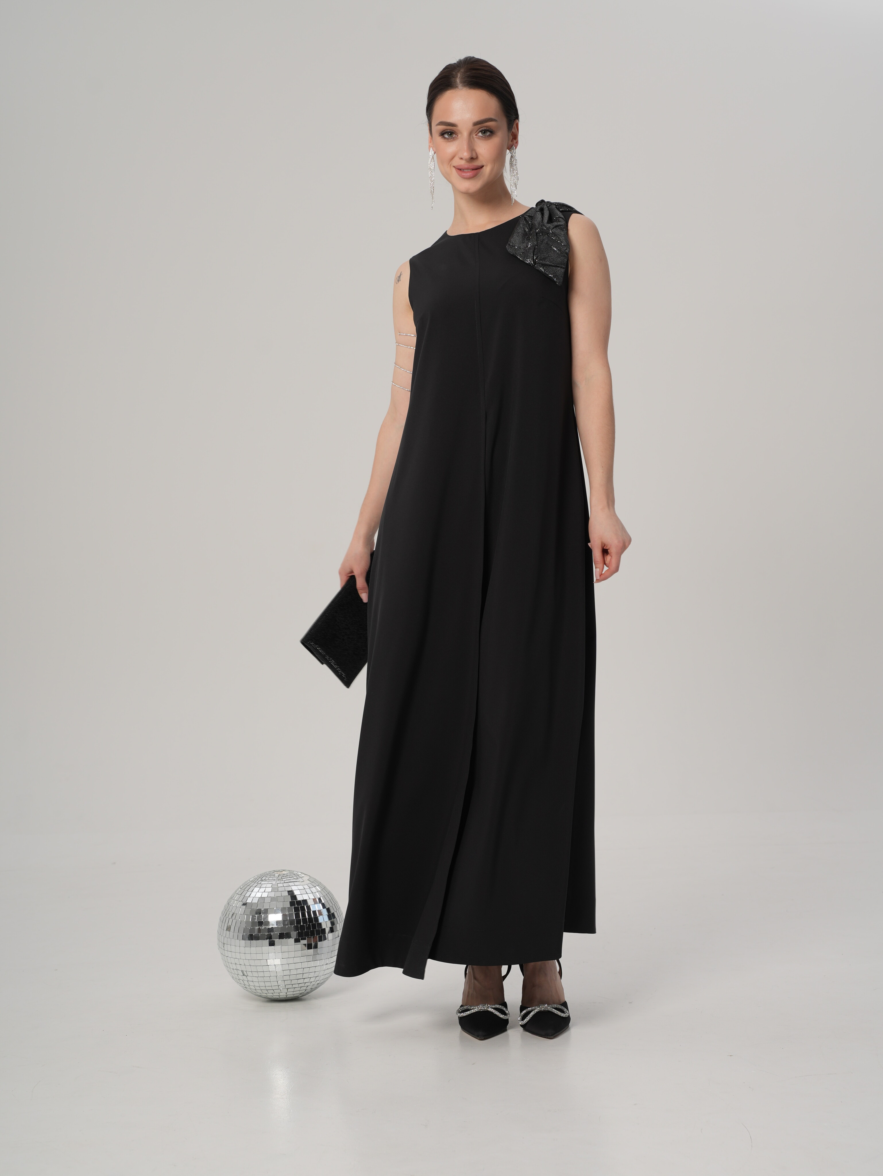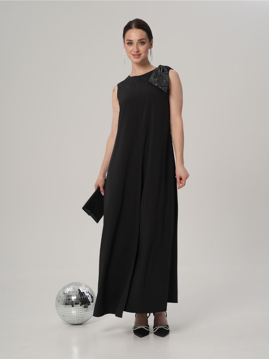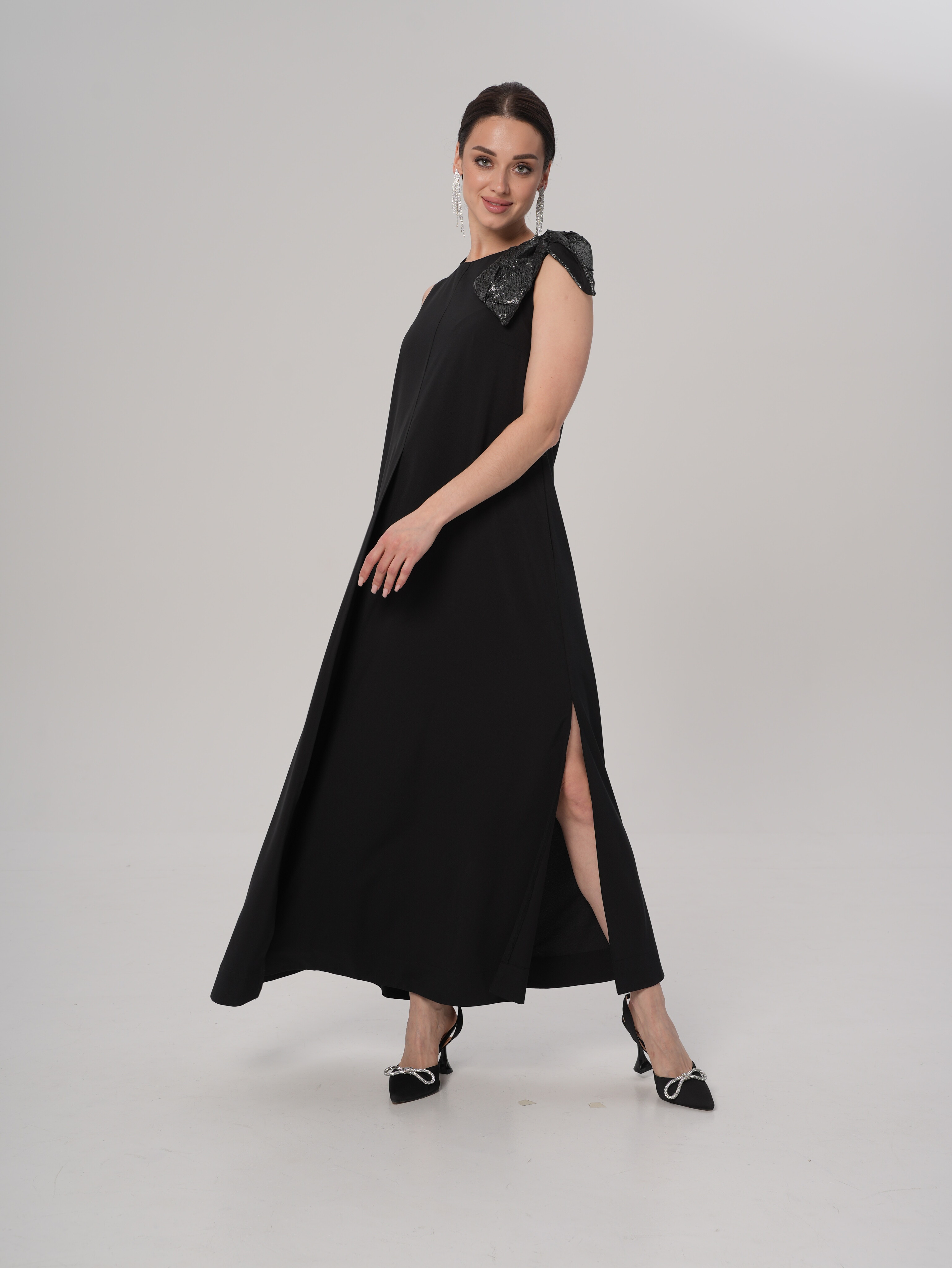 Платье женское праздничное, выполнено из очень комфортной приятной на ощупь ткани. Эта ткань мало мнется, не садится при стирках, не закатывается и легко гладится. Оригинальное длинное платье сочетает в себе несколько стилей и назначений. Эта универсальная, и при этом очень необычная модель в стиле легкого оверсайз прекрасно подходит девушкам с хрупким телосложением и девушкам с приятными формами, а так же для беременных. Это нарядное платье отлично подойдет для любого торжества на корпоратив или новый год. По спинке, для удобства, в среднем шве потайная молния. В боковых швах карманы. Изделие изготовлено в России на собственной фабрике. Качество продукции - наш приоритет!