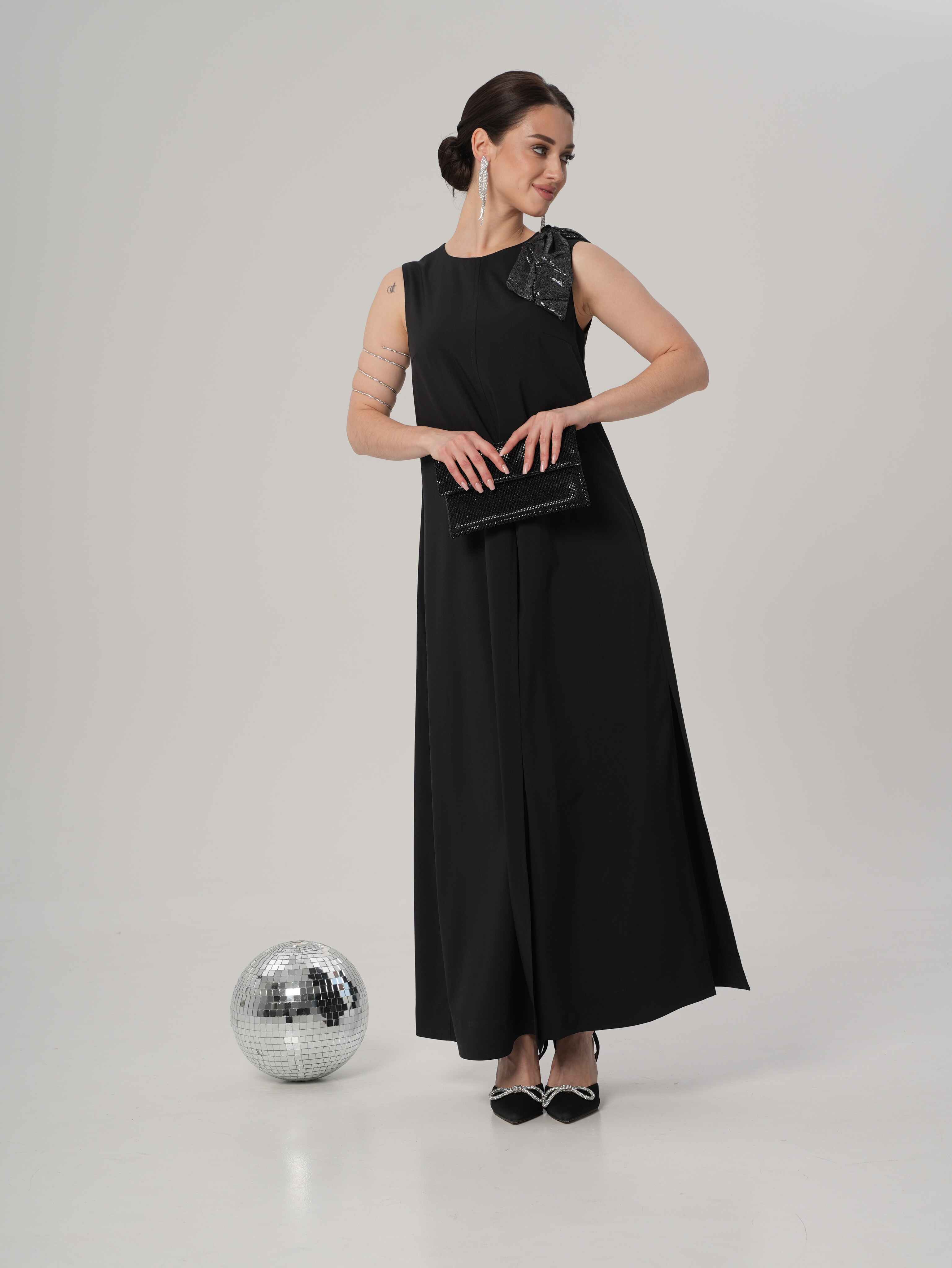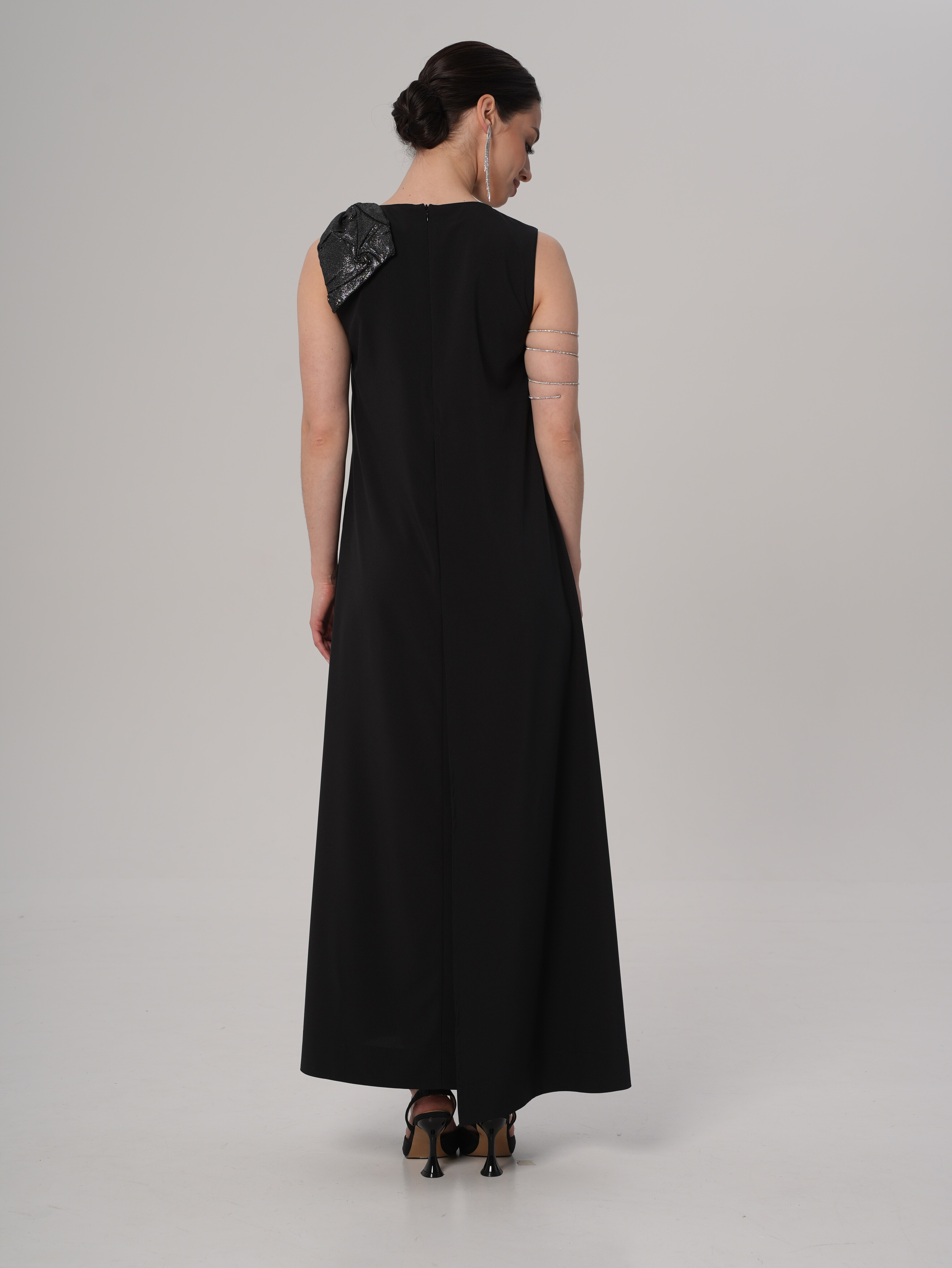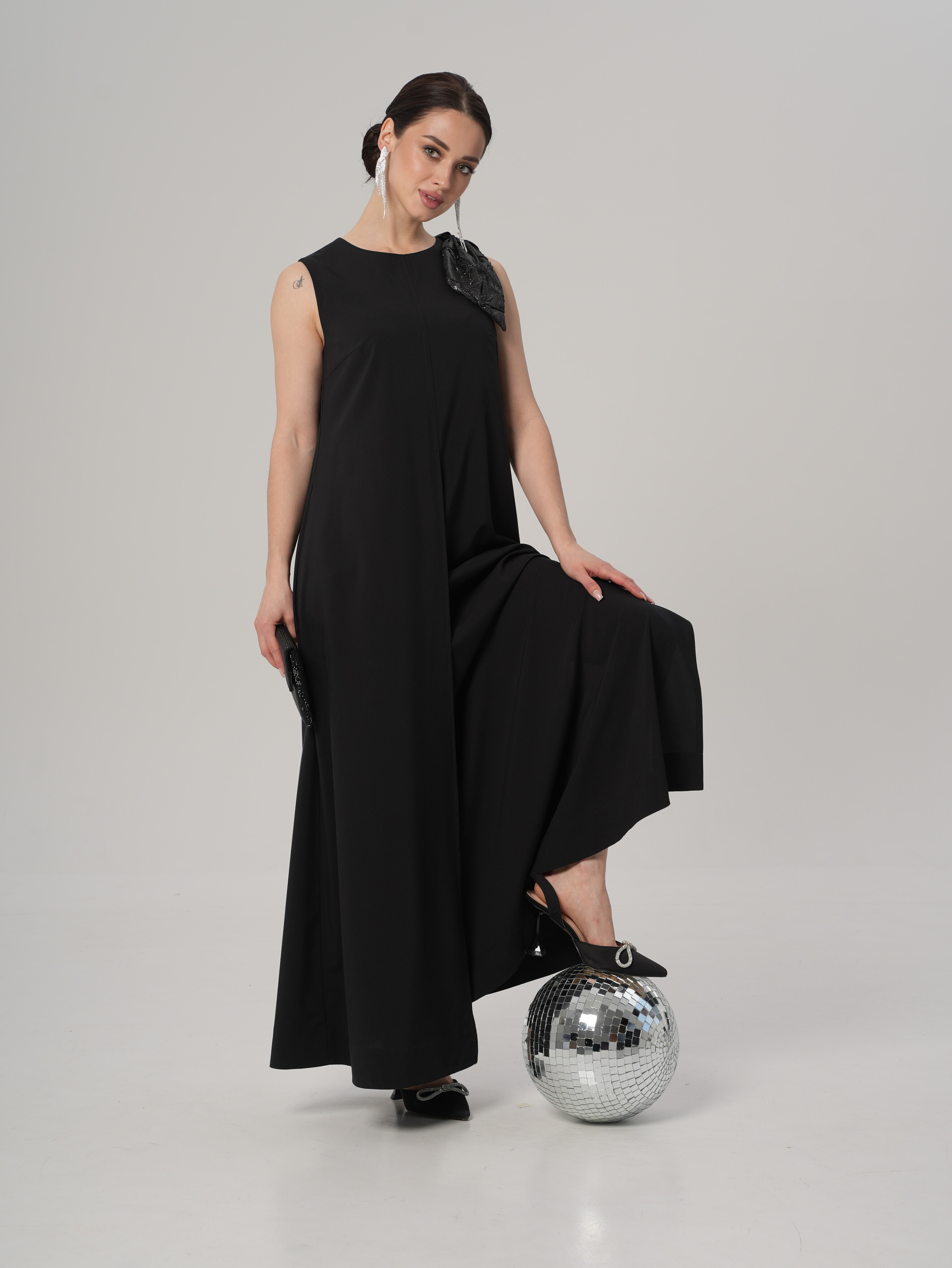Платье женское праздничное, выполнено из очень комфортной приятной на ощупь ткани. Эта ткань мало мнется, не садится при стирках, не закатывается и легко гладится. Оригинальное длинное платье сочетает в себе несколько стилей и назначений. Эта универсальная, и при этом очень необычная модель в стиле легкого оверсайз прекрасно подходит девушкам с хрупким телосложением и девушкам с приятными формами, а так же для беременных. Это нарядное платье отлично подойдет для любого торжества на корпоратив или новый год. По спинке, для удобства, в среднем шве потайная молния. В боковых швах карманы. Изделие изготовлено в России на собственной фабрике. Качество продукции - наш приоритет!