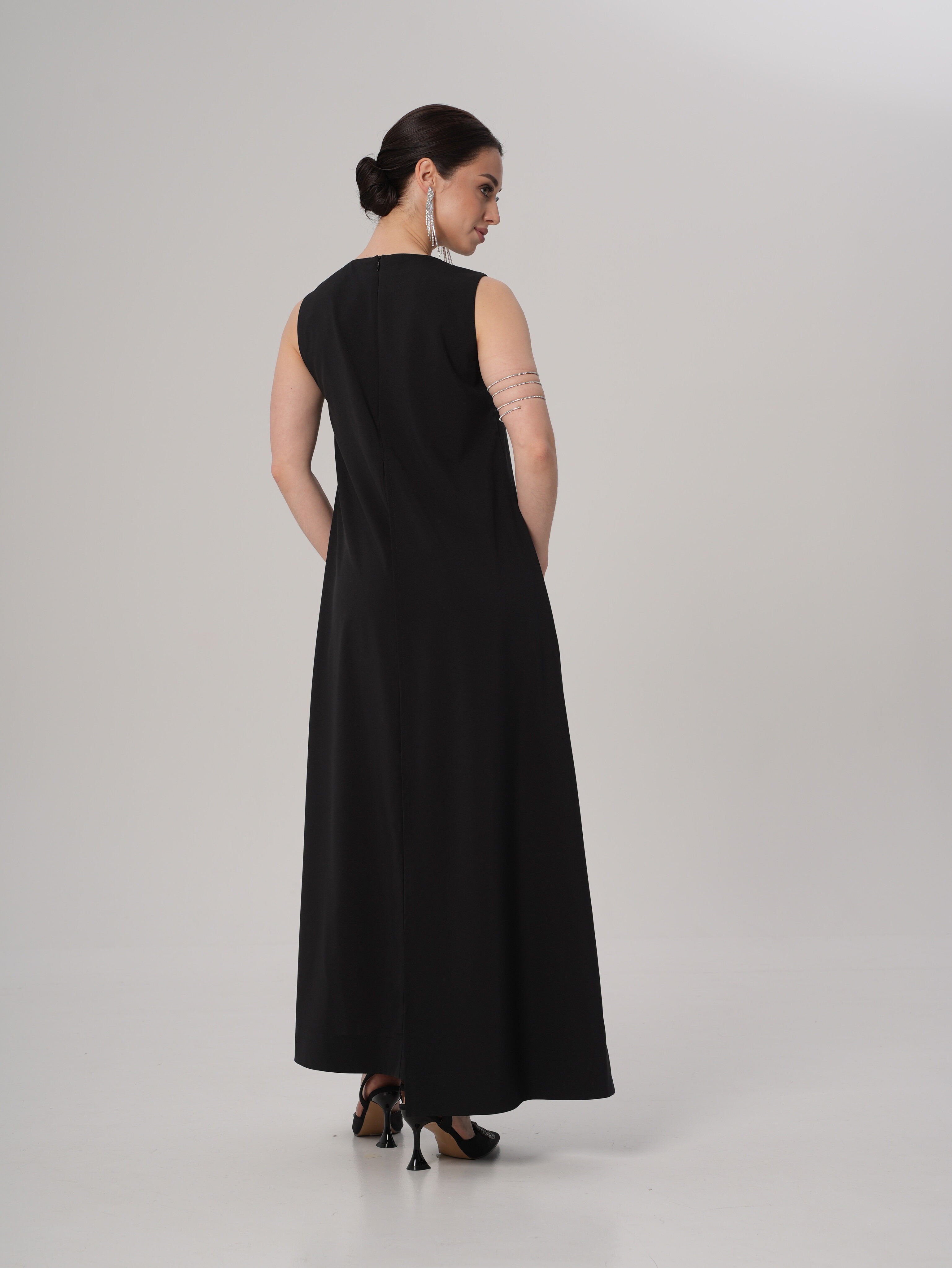 Платье женское праздничное, выполнено из очень комфортной приятной на ощупь ткани. Эта ткань мало мнется, не садится при стирках, не закатывается и легко гладится. Оригинальное длинное платье сочетает в себе несколько стилей и назначений. Эта универсальная, и при этом очень необычная модель в стиле легкого оверсайз прекрасно подходит девушкам с хрупким телосложением и девушкам с приятными формами, а так же для беременных. Это нарядное платье отлично подойдет для любого торжества на корпоратив или новый год. По спинке, для удобства, в среднем шве потайная молния. В боковых швах карманы.