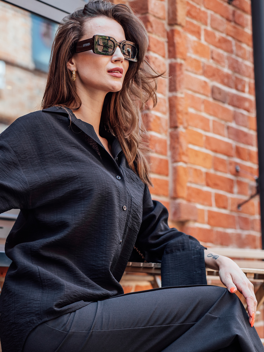 Легкая женская рубашка OVERSIZE (оверсайз) из тонкой вискозы -модный тренд этого сезона! Рубашка туника подойдет, как для летнего офиса, для повседневного образа. для прогулки на море. для школы и института. Универсальней модели не найти! Ткань отличается от обычных хлопковых рубашек за счет добавления нейлона, который придает благородный блеск. Рубашка смотрится очень дорого и респектабельно. Вискозные нити, входящие в состав ткани, придают ей актуально-модный, особый вид. Блузка легко комбинируется с брюками палаццо, либо с прямыми узкими, шортами или джинсами. Ее можно носить вторым слоем, как блузу -тунику, а вниз можно одеть футболку или кроп-топ. Длинные рукава рубашки можно подвернуть для создания более casual (кежуального) стиля.