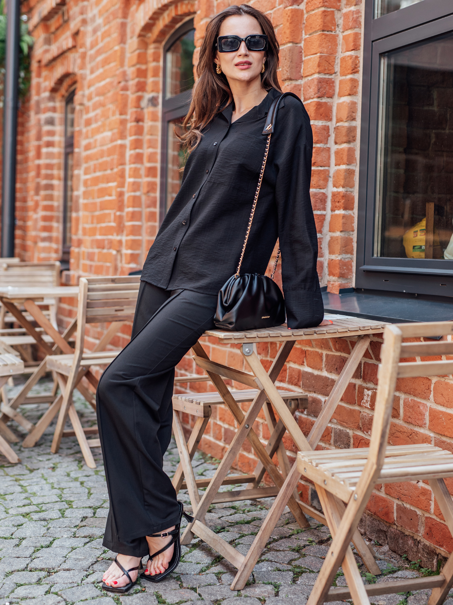 Рубашка женская Бл-1012 б с длинным рукавом, цвет черный.