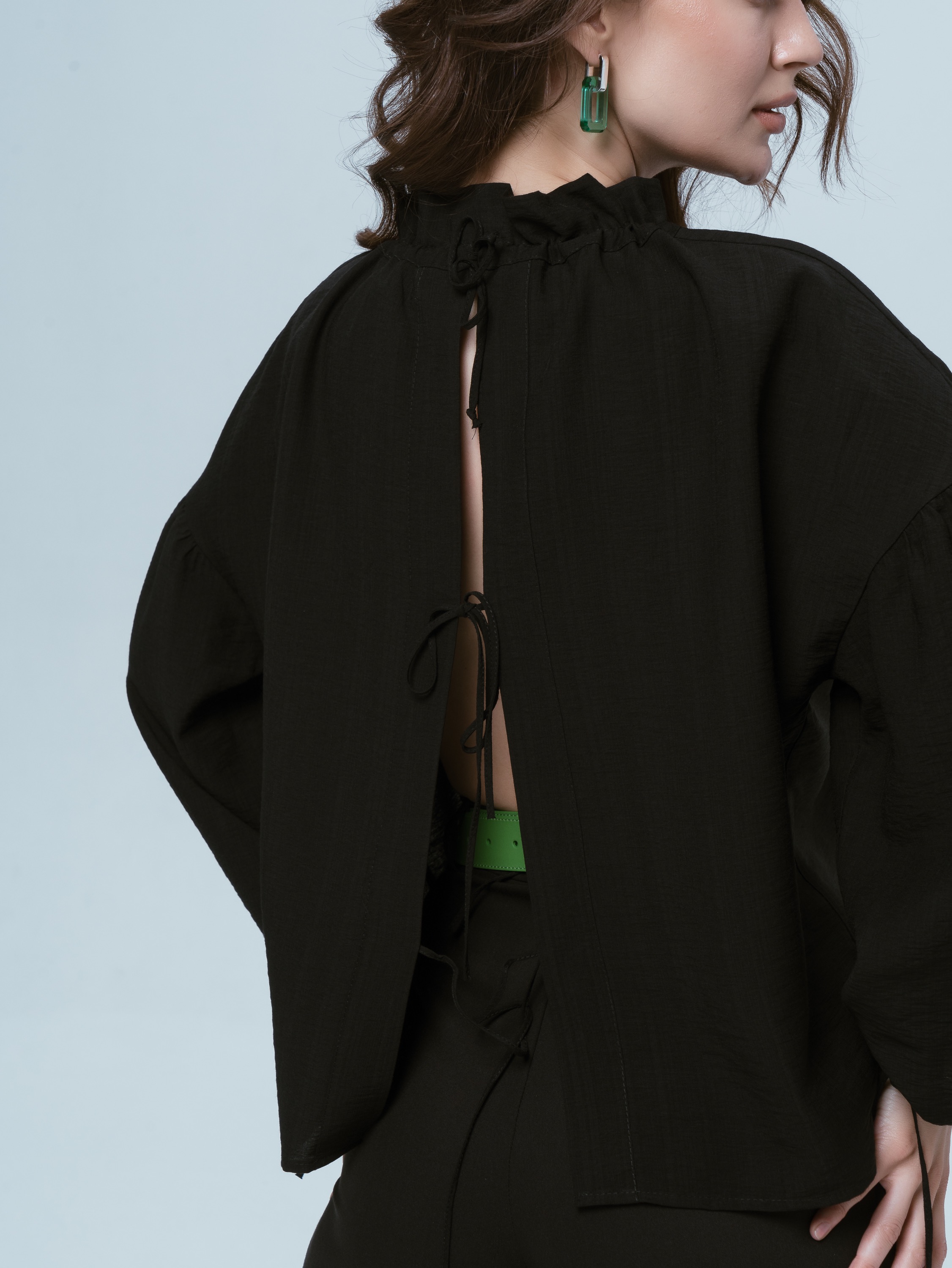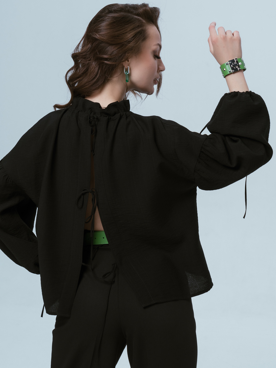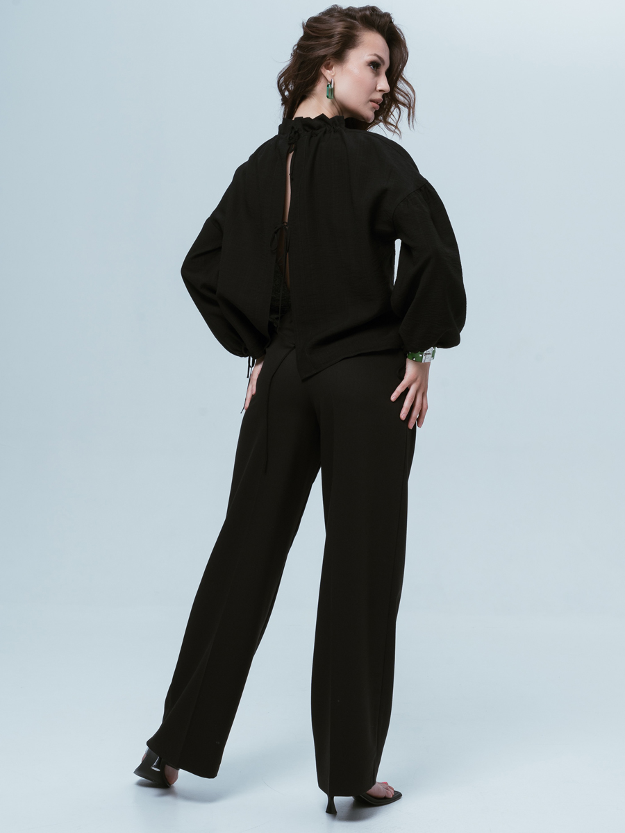 Рубашка черная женская на завязках праздничная оверсайз из тонкой вискозы - модный тренд этого сезона! Ткань отличается от обычных хлопковых рубашек за счет добавления нейлона, который придает благородный блеск. Рубашка черная женская полупрозрачная на завязках оверсайз смотрится очень дорого и респектабельно. Вискозные нити, входящие в состав ткани, придают ей актуально-модный, особый вид. Блузка легко комбинируется с брюками палаццо или с прямыми узкими, шортами или джинсами. Ее можно носить вторым слоем, как блузу -тунику, а вниз можно одеть футболку или кроп-топ. Для более смелого образа завязки можно завязать спереди!