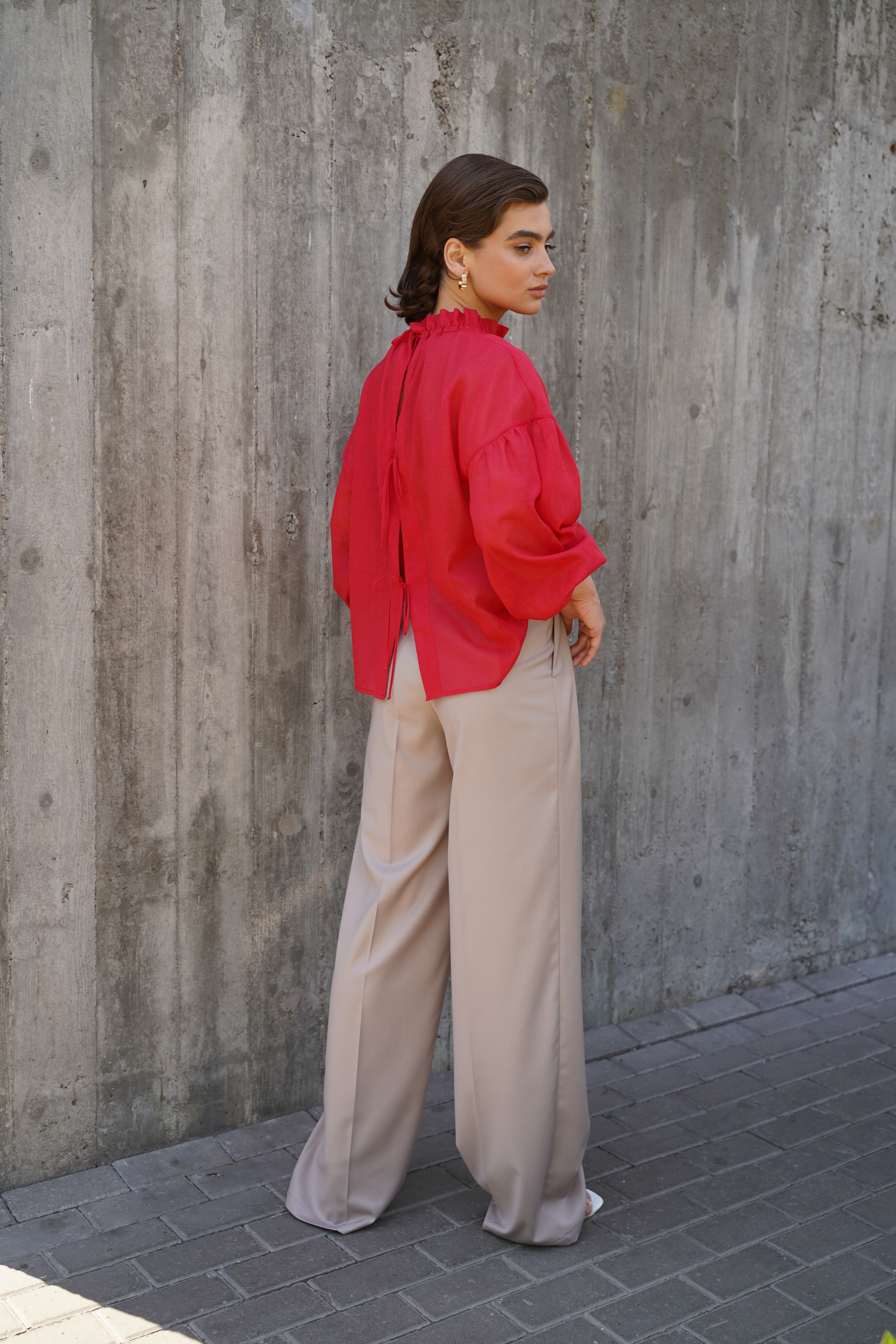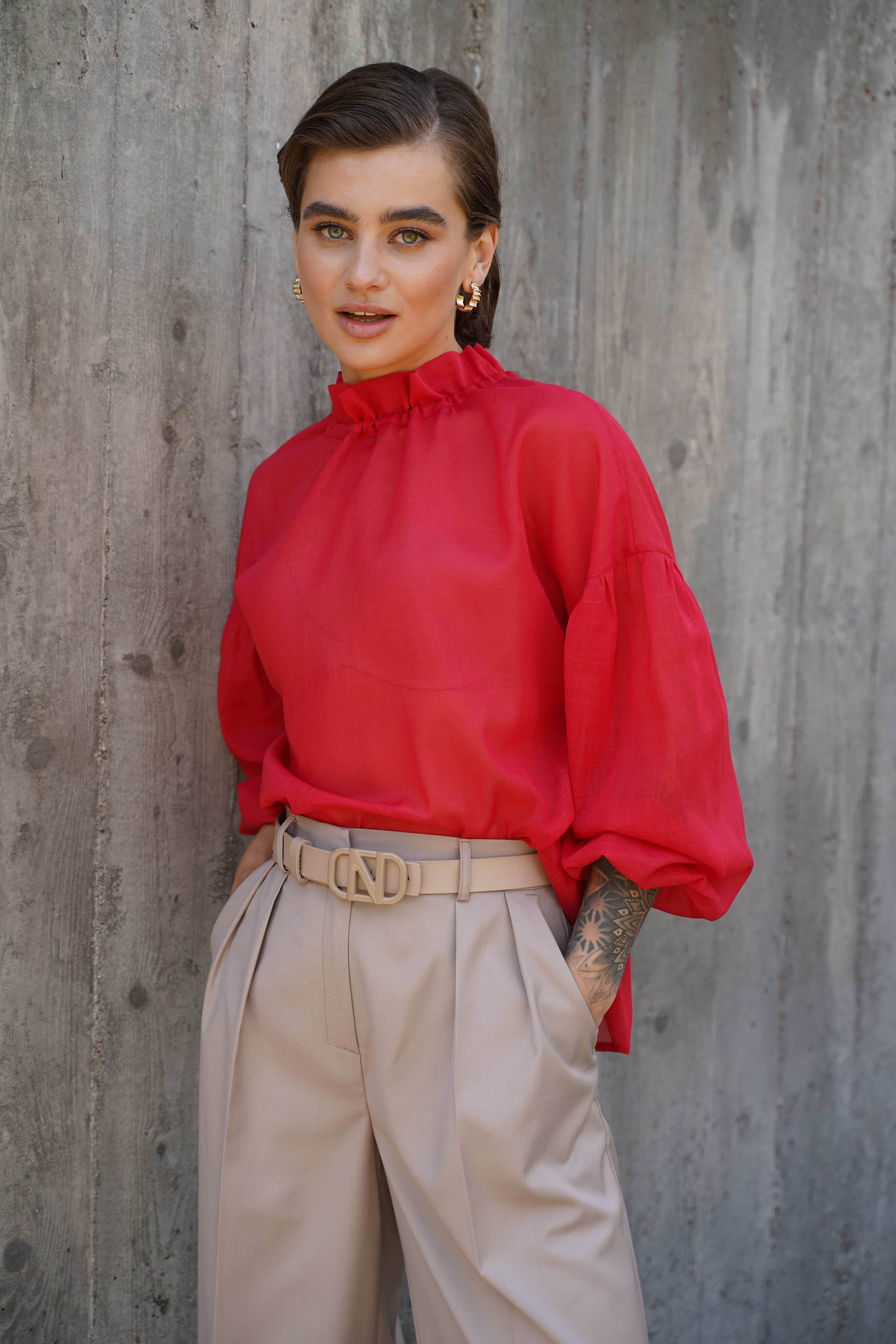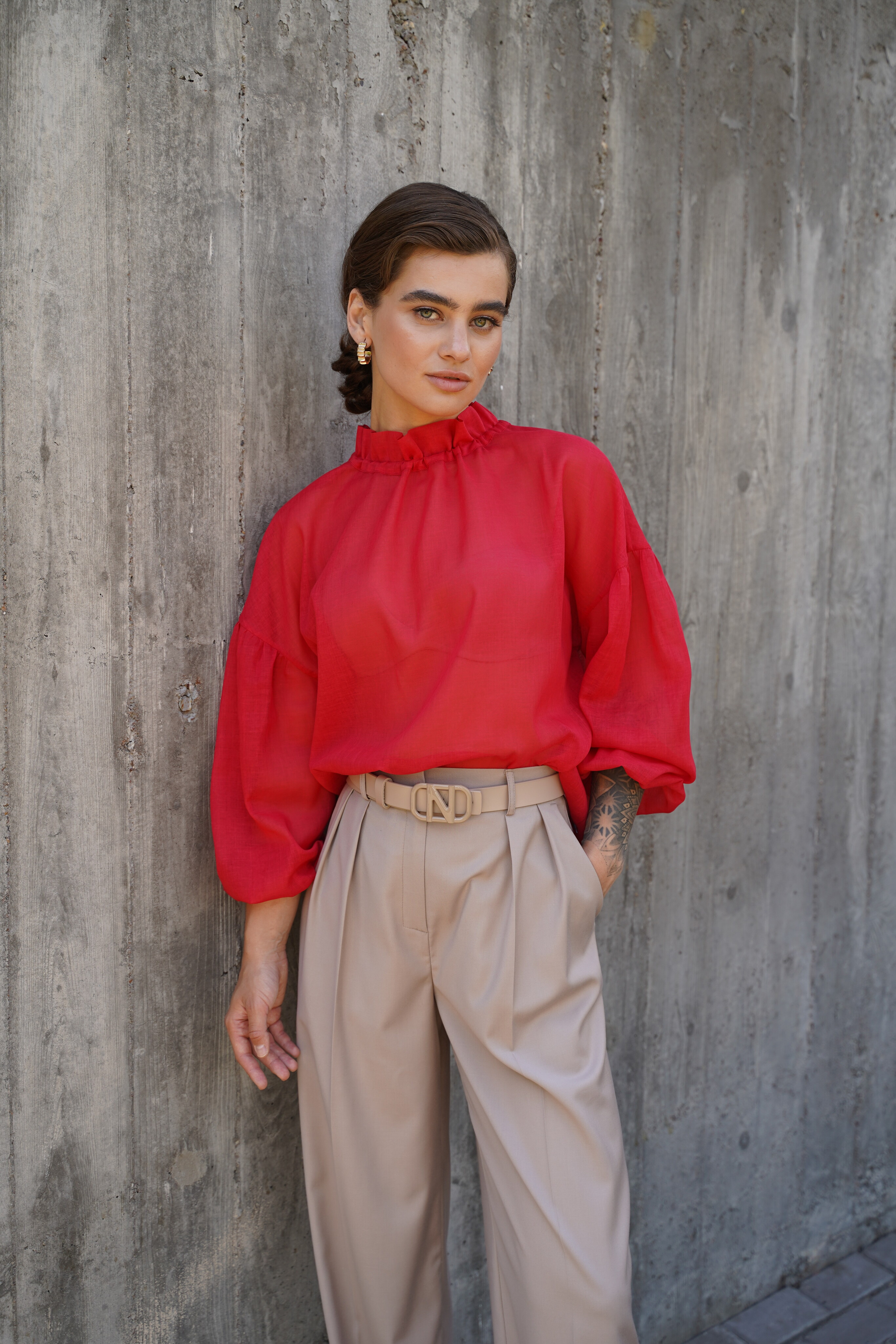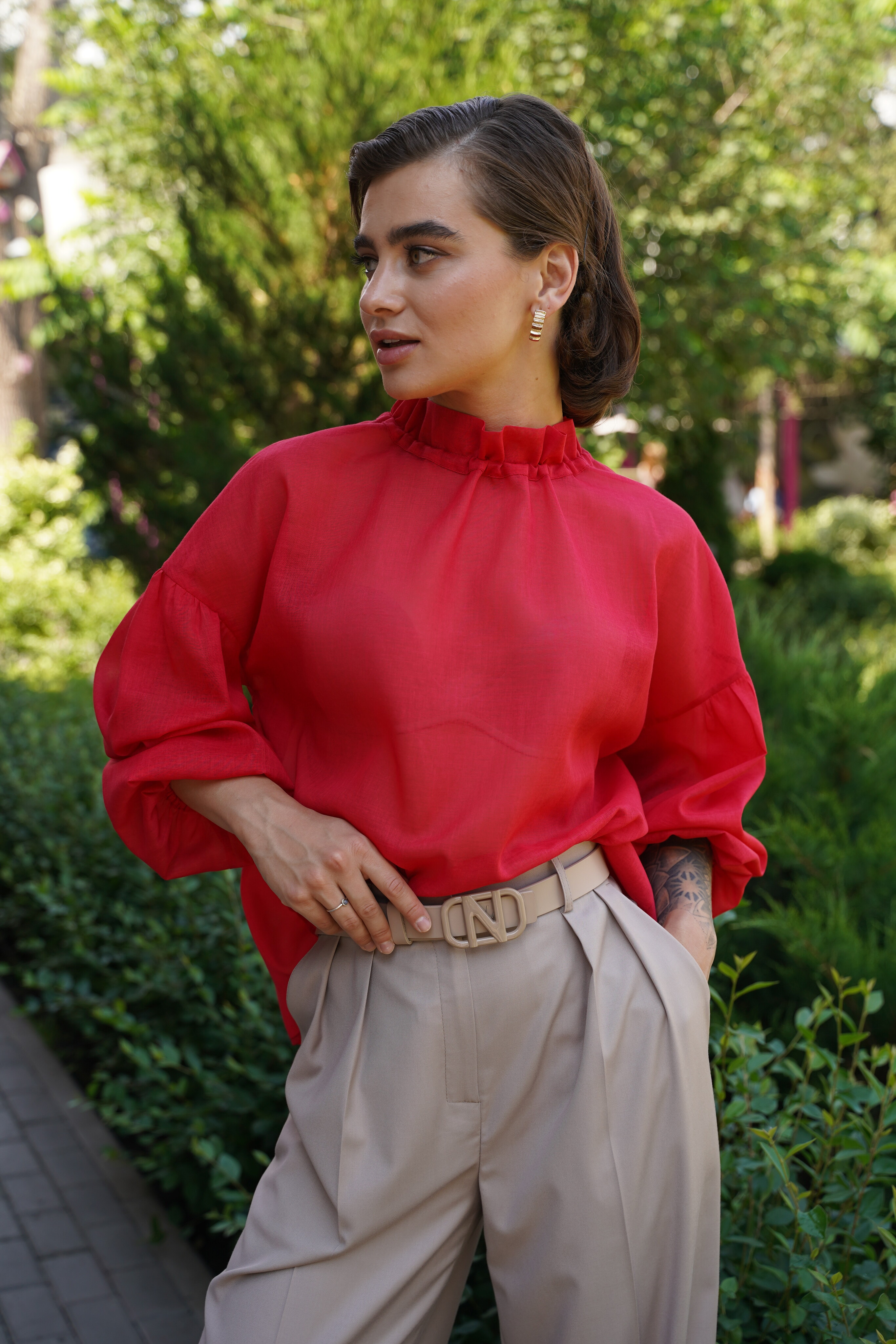 Рубашка красная полупрозрачная женская на завязках праздничная оверсайз из тонкого батиста. Рубашка красная женская полупрозрачная на завязках оверсайз смотрится очень дорого и респектабельно. Блузка легко комбинируется с брюками палаццо или с прямыми узкими, шортами или джинсами. Ее можно носить вторым слоем, как блузу -тунику, а вниз можно одеть футболку или кроп-топ. Для более смелого образа завязки можно завязать спереди!